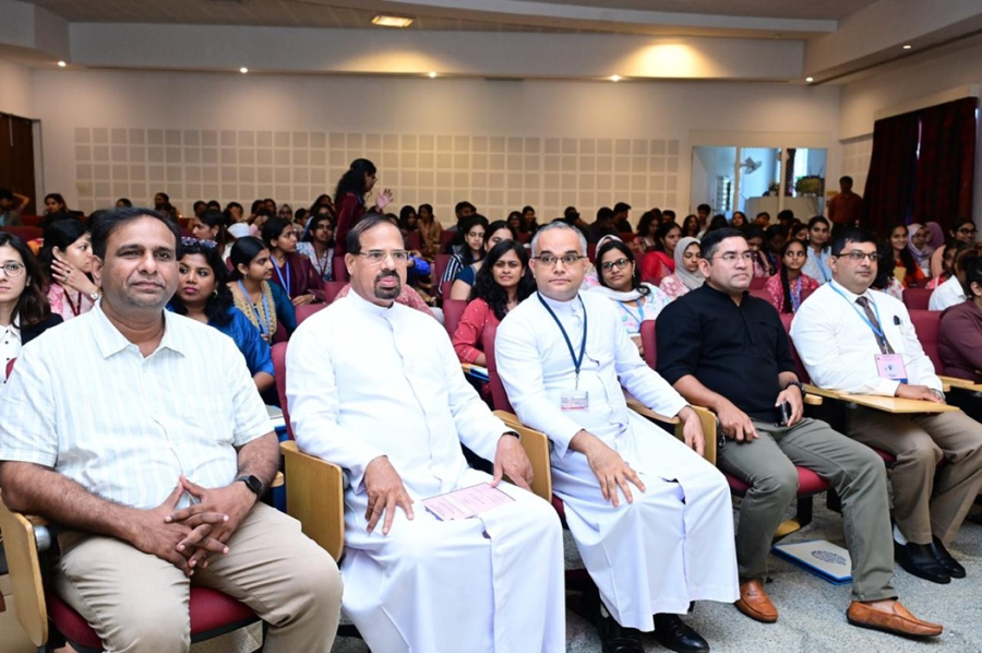 Also present on the occasion were Dr Michael Santhumayor, administrator (FMMC, FMCOAHS & FMCOP); Fr George Jeevan Sequeira, administrator (FMMCH); Prof Cynthia Santhumayor, principal and organising chairperson; and Dr Ramandeep, professor & HoD (SLP) and organising secretary.