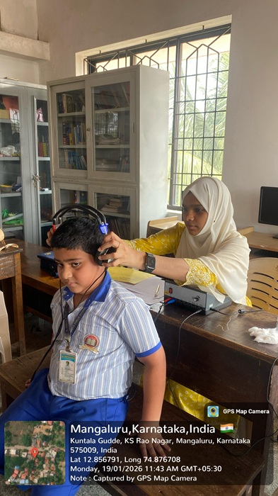 The speech and hearing services were carried out by Ms Keerthana (Audiology Grade 1), Ms Al Shifa Khan(SLP Grade 1), Ms. Shamlin and Ms. Randha (Intern students). Each student underwent appropriate screening procedures for speech, language, and hearing respectively.